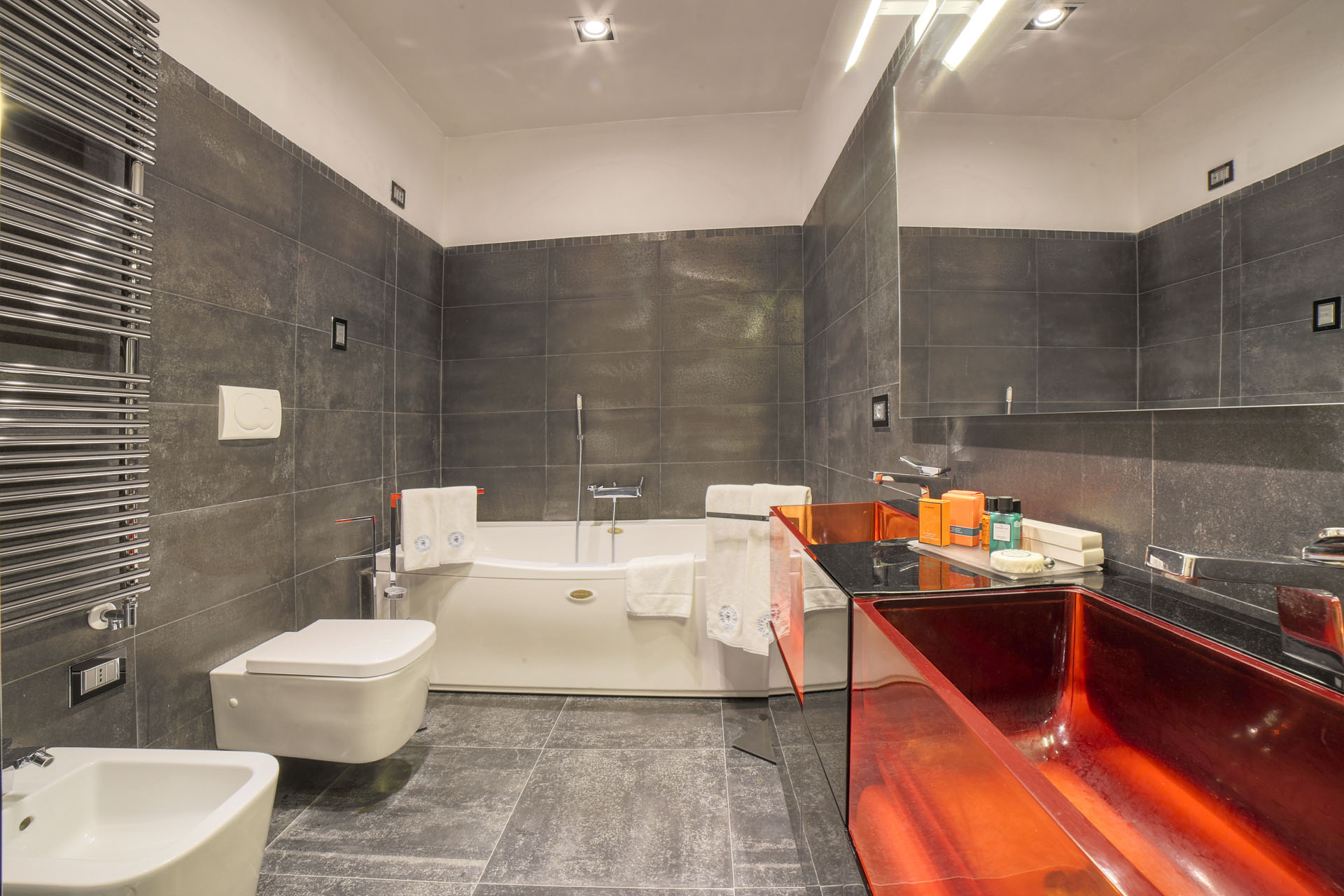Il bagno in stile contemporaneo, ha una vasca Iacuzzi.